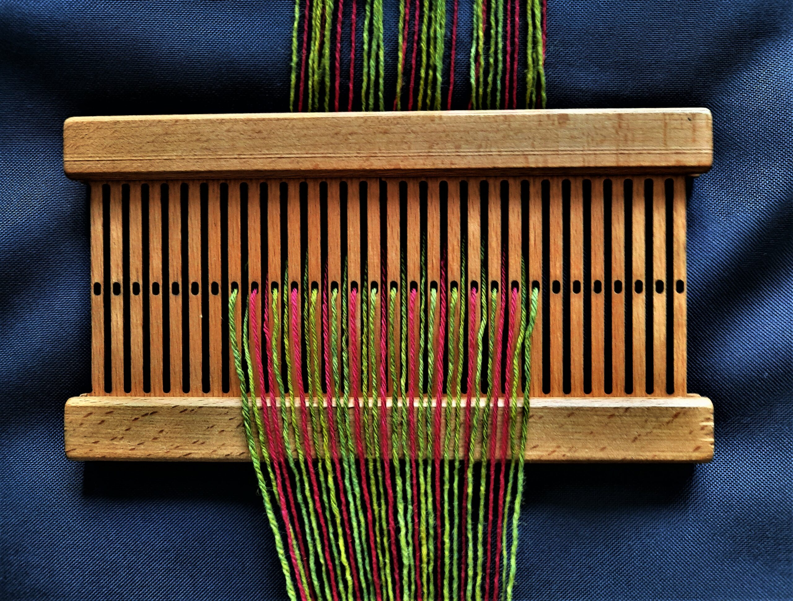 - um das Garn richtig in den Webkamm einzufädeln, kann man den Webbrief zu Hilfe ziehen