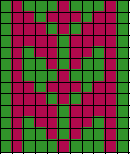 Da mein Muster 7 Musterfäden hat, brauche ich 7x 4m von dem rosa Garn plus jeweils nochmal 2x 4m für den Rand links und rechts. Für den Grundfaden muss man jetzt ein wenig rechnen (oder zählen), denn auf einen Musterfaden kommen immer zwei Grundfäden, zumindest bei dieser Webart. Bei dem Rand reicht es, wenn ihr links und rechts der beiden rosa Fäden zwei grüne Fäden setzt, ansonsten habt ihr keinen durchgängigen Rand, sondern einen Rand wie bei der Borte lettisches Auge (siehe in Galerie). So sieht das dann aus, wenn ihr von der Mitte ausgehend den Kamm belegt: